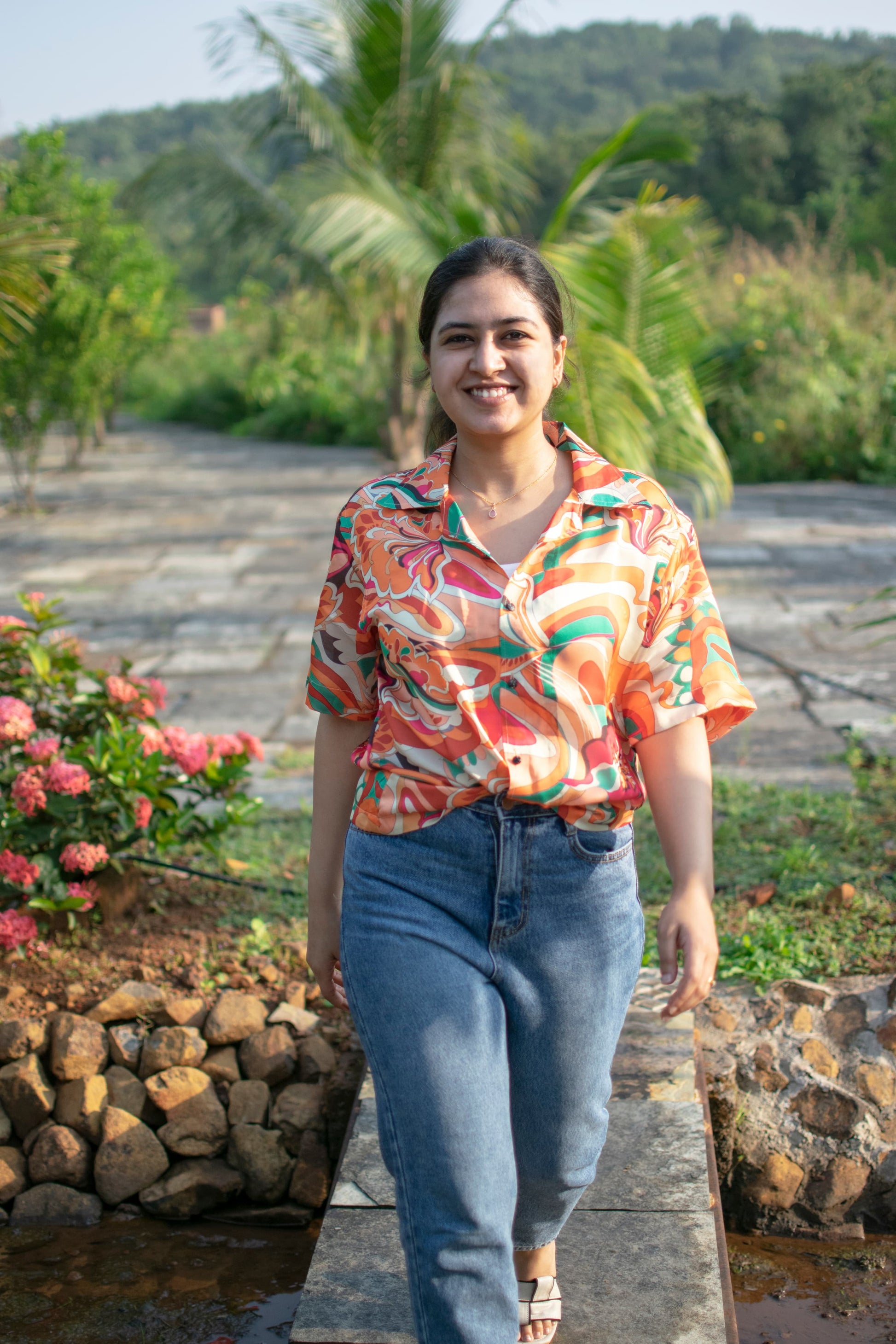Step into effortless elegance with our Retro Bloom Linen Silk Shirt, designed to bring color and comfort together. Crafted from a breathable linen-silk blend, this shirt features a lively swirl of abstract florals and curves in shades of orange, pink, green, and cream – a bold nod to retro aesthetics. Its relaxed fit, short sleeves, and soft texture make it perfect for sunny days, weekend getaways, or simply brightening up your everyday wardrobe. Style it tucked into jeans or worn loose for a carefree yet chic look.