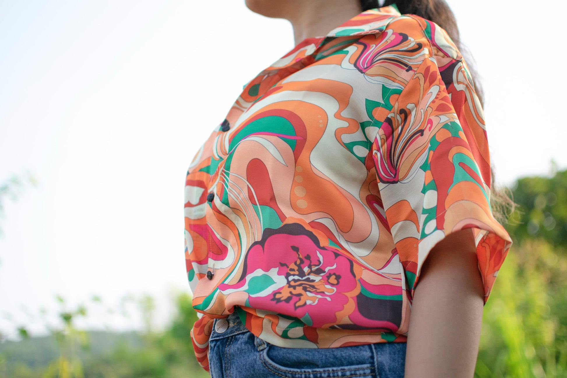 Retro Bloom Linen Silk Shirt – Vibrant Abstract Print