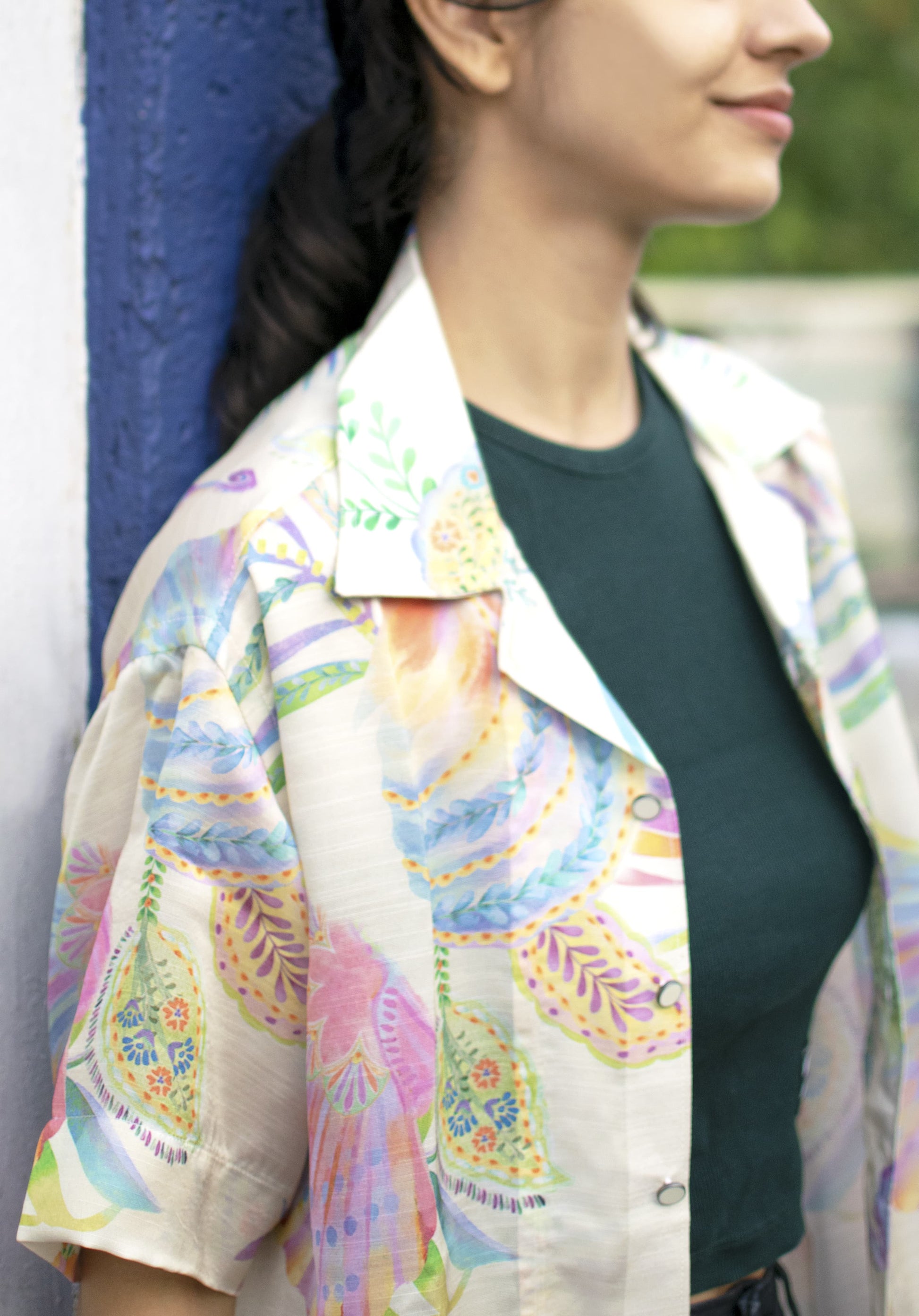 Sea Breeze Bloom Linen Silk Shirt – Pastel Garden Escape