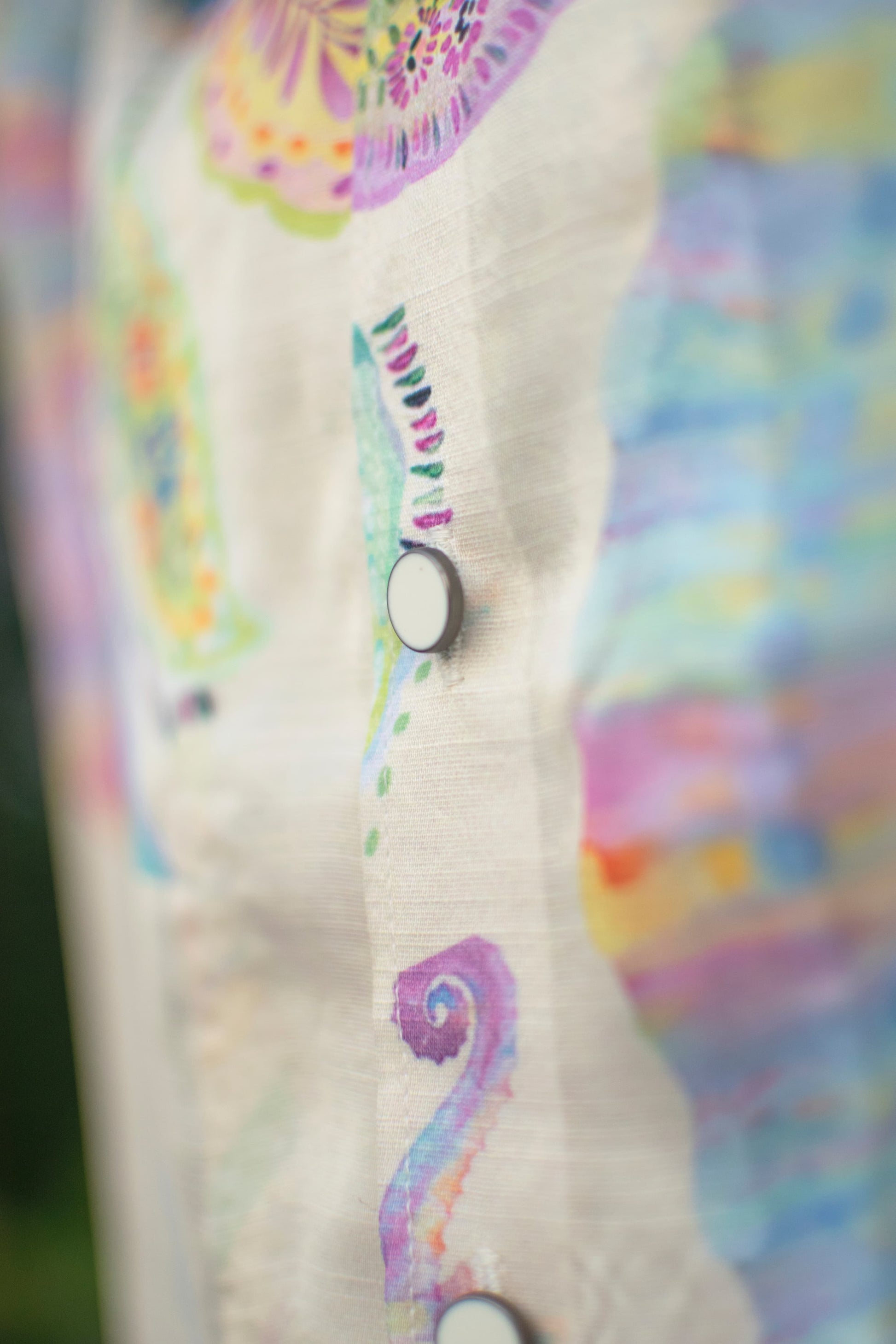 Embrace the serenity of coastal charm with our Sea Breeze Bloom Linen Silk Shirt – a vibrant ode to ocean air and floral whispers. With a delicate fusion of pastel pinks, aquas, and sunny yellows, this breezy shirt showcases a hand-drawn paisley and sea-life inspired pattern that feels like a vacation on fabric. The luxurious linen-silk blend keeps you cool and comfortable, while the relaxed silhouette and short sleeves offer an effortless, flattering fit. Whether you’re headed to a weekend brunch or strolling along the shore, this shirt is your perfect summer companion.