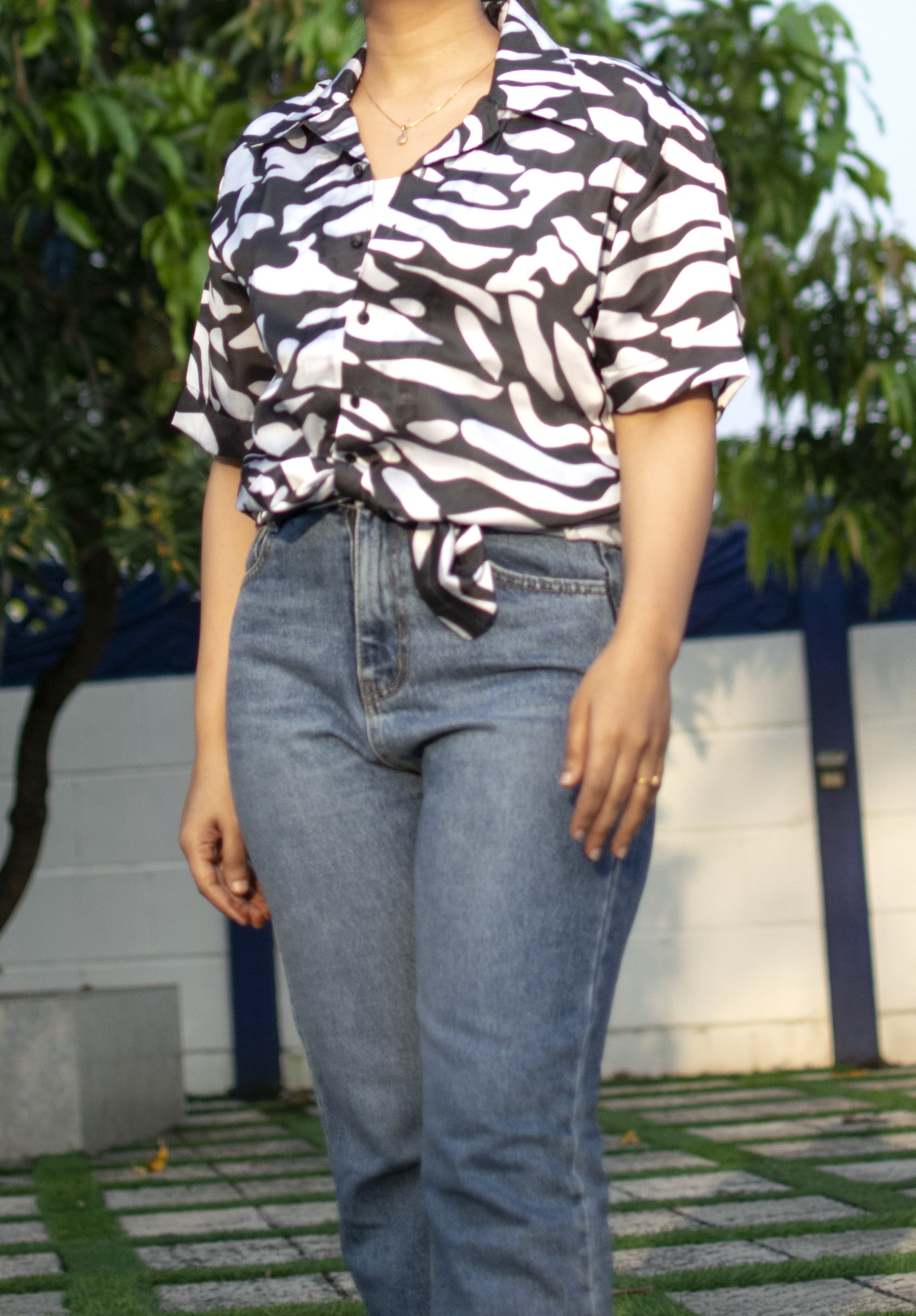 Channel bold confidence with our Urban Safari Linen Silk Shirt, where comfort meets contemporary flair. Made from a breathable linen-silk blend, this shirt showcases a striking black-and-white abstract print inspired by zebra patterns—perfect for making a statement while staying effortlessly cool. Featuring a relaxed fit, short sleeves, and a subtly glossy finish, it transitions seamlessly from daywear to evening chic. Pair it with high-rise denim or linen trousers for a polished, carefree ensemble that speaks volumes.